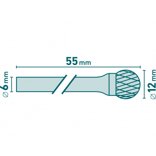 průměr frézy 12mm, průměr stopky 6mm, celková délka 55mm, materiál wolfram karbid, tvrdost 89-91HRA