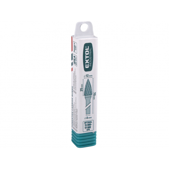 fréza karbidová, ostrý oblouk, pr.12x25mm/stopka 6mm,sek střední (double-cut)