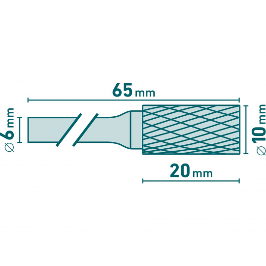 fréza karbidová, válcová s čelním ozubením, pr.10x20mm/stopka 6mm,sek střední (double-cut)