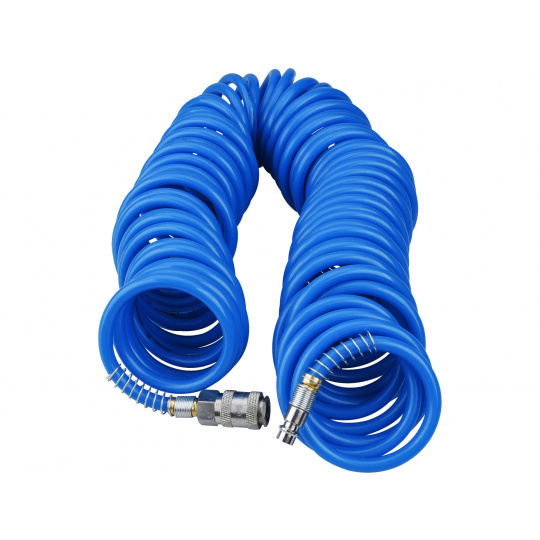 hadice vzduchová spirálová PU s mosaznými rychlospojkami, 1/4", vnitřní ⌀6mm, L 15m