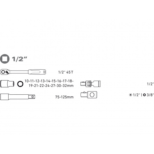 1/2": 10-11-12-13-14-15-16-17-18-19-21-22-24-27-30-32mm