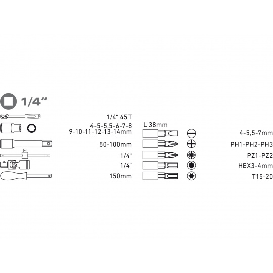 1/4: (-) 4-5,5-7mm, PH1-2-3, PZ1-2, H3-4, T15-20