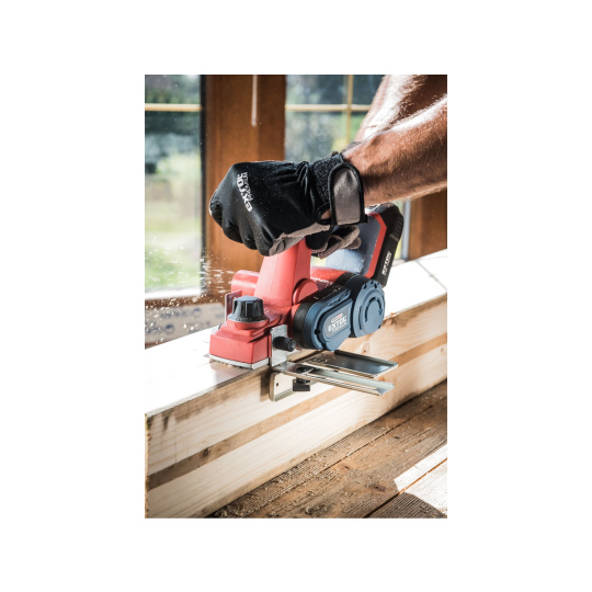 Aku hoblík Extol Premium kombinuje rychlost a výkonnost elektrického hoblíku s pohodlím akumulátorového nářadí. Výsledkem je rychlé a přesné odebrání materiálu bez překážejícího kabelu. Řezná hlava hoblíku má dva kvalitní břity. Ochranný trn v pracovní desce hoblíku chrání čepel i obráběný materiál tím, že udržuje čepel zvednutou a mimo kontakt s povrchem vašeho materiálu mezi řezy. Sběrný vak připojený na prachový výstup pomáhá udržovat pracovní prostor čistý a bez pilin. Přiložený adaptér pro falcování pomáhá vytvářet polodrážky ve vašich deskách a paralelní adaptér udržuje hoblík v nastavené vzdálenosti. Pro běžnou práci dostačují jeden nebo dva 2000mAh akumulátory, které můžete rychle nabít v rychlonabíječce, pro náročnější nebo delší práci doporučujeme větší akumulátory s kapacitou 4000–8000mAh. Akumulátor lze použít ve všech typech nářadí řady EXTOL SHARE20V. Díky použité Li-ion technologii je ho možné kdykoliv dobíjet, aniž by se tím snižovala jeho kapacita. Li-ion akumulátor ztrácí energii vlivem samovybíjení velmi pomalu a vydrží dlouho nabitý a připravený k použití.