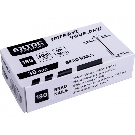 hřebík nastřelovací, 6000ks, 30mm, 18G, typ F, hlava 2mm, 1,25x0,95mm