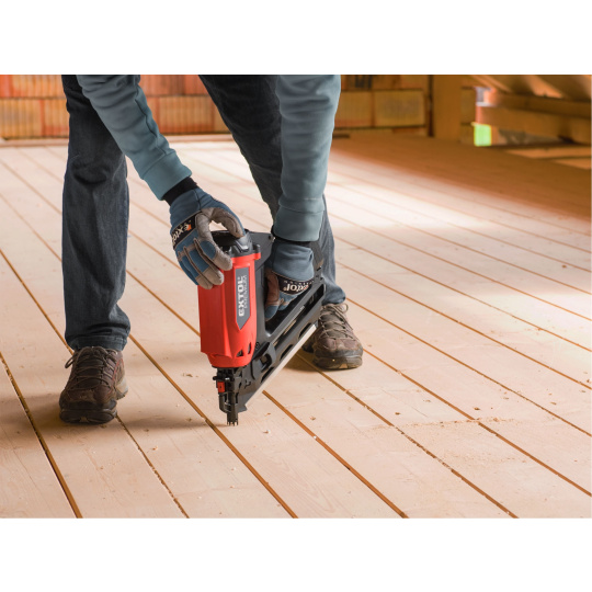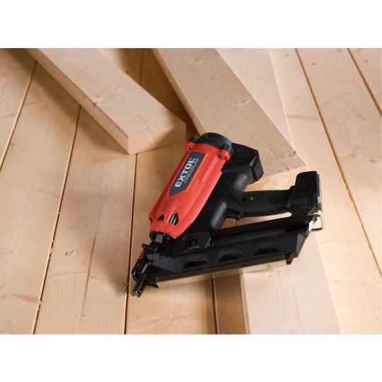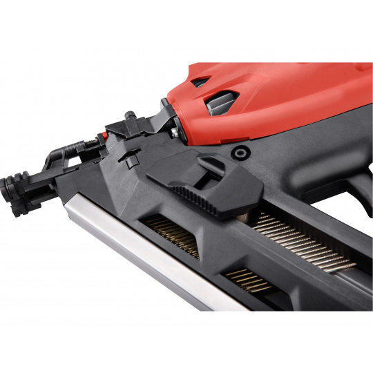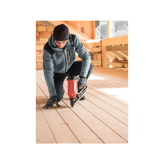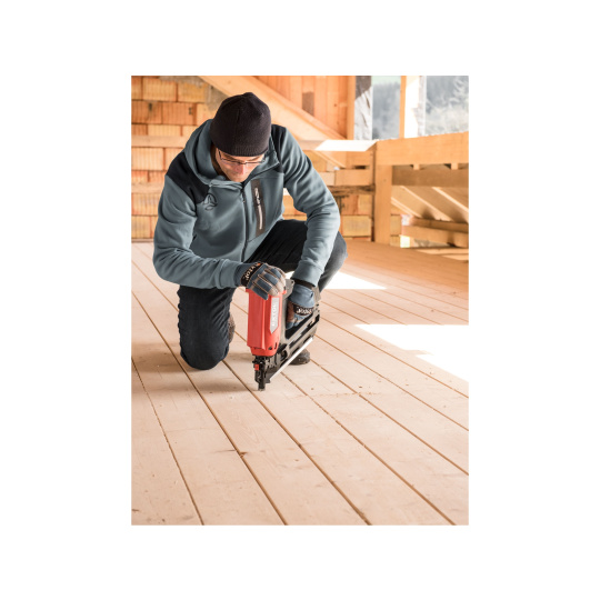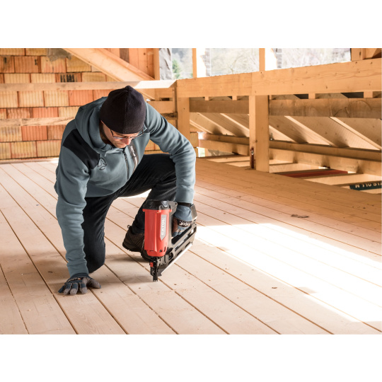 Silná hřebíkovačka na konstrukce se zážehovým plynovým pohonem je určena pro náročné nebo celodenní práce ve výškách a na stavbách, pro výrobu konstrukcí ze dřeva např. stloukáním krovů při stavbě střechy a celých dřevostaveb, pro výrobu bednění apod. s použitím hladkých či vroubkovaných hřebíků o délce 50-90 mm s úhlem sklonu v pásu 34°. Hřebíkovačka umožňuje nastřelit mnohonásobně více hřebíků na jednu plynovou kartuš (až 1200ks) a 5000ks na jednu baterii oproti čistě aku hřebíkovačkám. V porovnání s pneumatickými hřebíkovačkami zase nemusíte tahat kompresor s hadicemi a hřebíkovačka má tichý provoz. Hřebíkovačka umožňuje snadné nastavení hloubky zaražení hřebíku do dřeva. Při přerušení práce ji lze zavěsit za pracovní opasek. Díky tomu, že je hřebíkovačka poháněna zážehem plynu z malé plynové kartuše, je lehká a má vysoký výkon. Součástí hřebíkovačky je také malá a lehká odnímatelná nabíjecí Li-ion baterie sloužící pro zážeh plynu. Náhradní nádobky s hořlavým plynem o objemu 80 ml určené pro pohon plynových hřebíkovaček lze zakoupit v obchodní síti, např. od výrobce BOSTITCH, objednávací specifikace nádobky: FC 80MLHPB nebo ekvivalent od jiných výrobců.