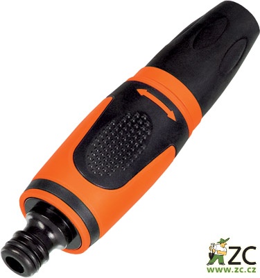 Postřikovací tryska DELUXE s protiskluzovým ergonomickým držadlem, pryžovou hlavou a plynulou regulací rozstřiku.
