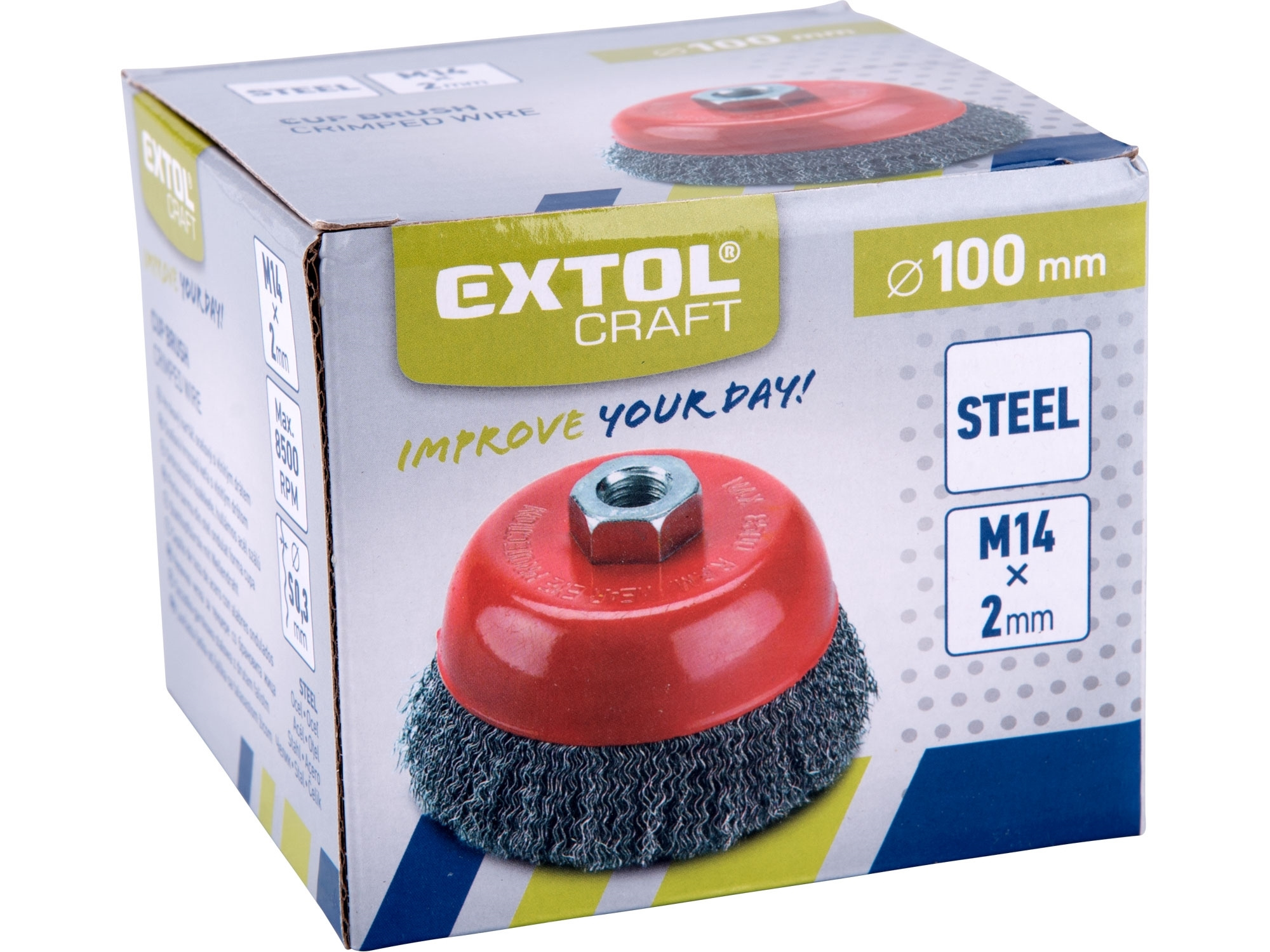 Řada technických kartáčů Extol nabízí široký výběr kartáčů pro všestranné nasazení, např. čištění povrchů materiálů, k odstraňování barev, nečistot, rzi, houževnatých nánosů, ke zdrsňování, odjehlování, odokujování apod. Upínání na úhlové brusky pomocí matice M14 a na vrtačky pomocí stopky o průměru 6mm.
