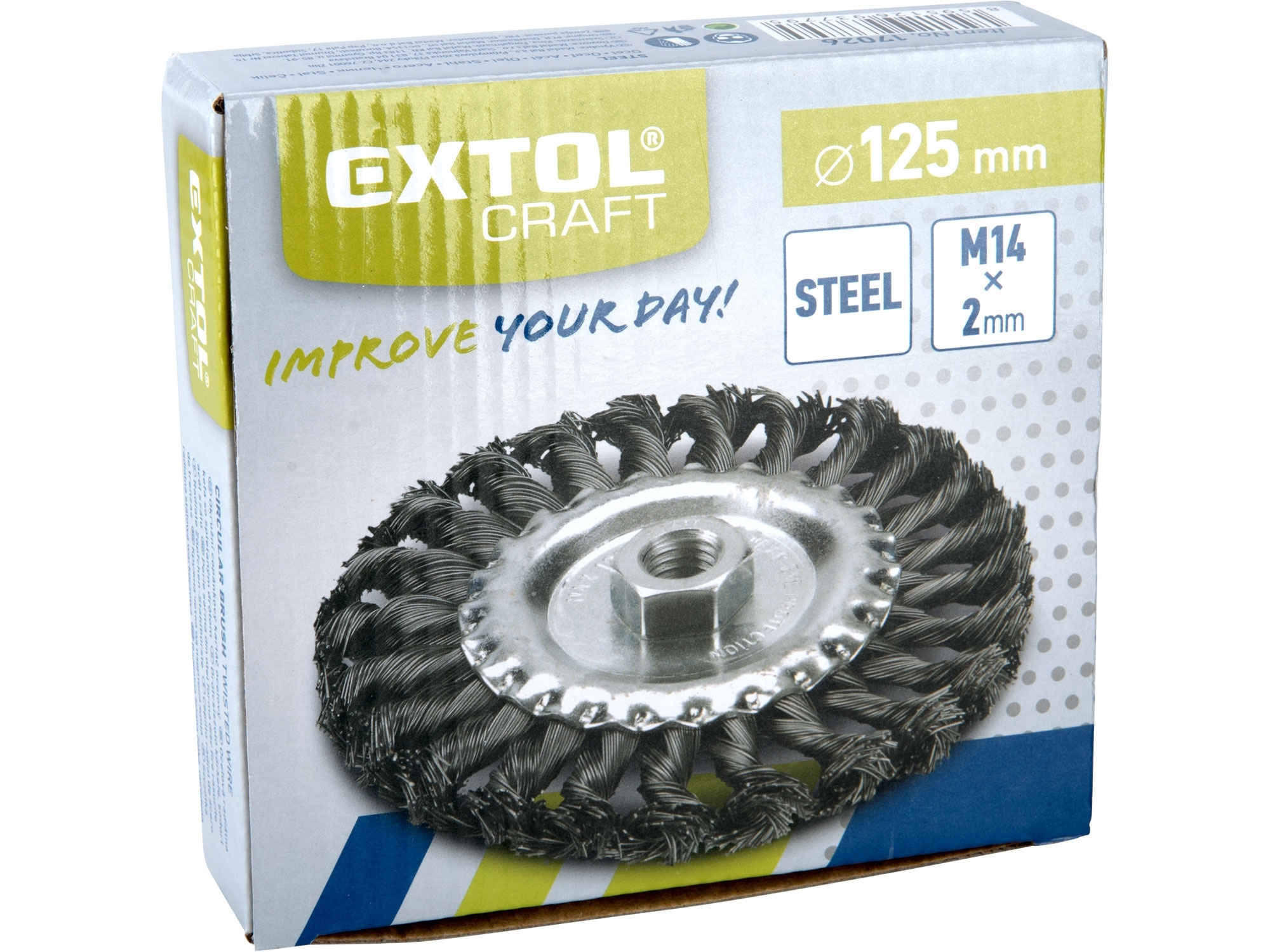 Řada technických kartáčů Extol nabízí široký výběr kartáčů pro všestranné nasazení, např. čištění povrchů materiálů, k odstraňování barev, nečistot, rzi, houževnatých nánosů, ke zdrsňování, odjehlování, odokujování apod. Upínání na úhlové brusky pomocí matice M14 a na vrtačky pomocí stopky o průměru 6mm.