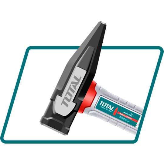 Inovovaná zápustkově kovaná hlava kladiva. Tepelné zpracování, 45# uhlíková ocel. Silná tříbarevná sklolaminátová rukojeť pro pohodlný úchop.