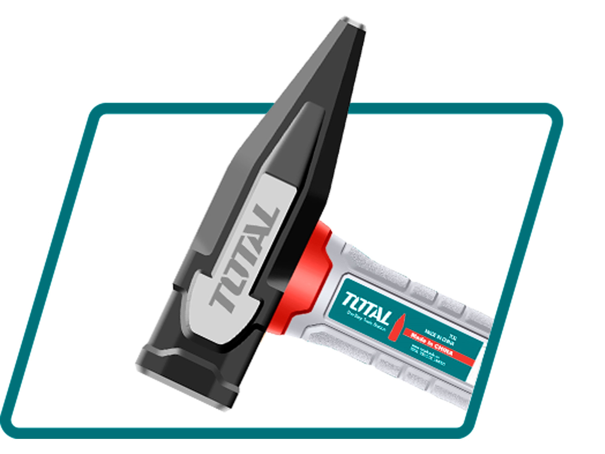 Inovovaná zápustkově kovaná hlava kladiva. Tepelné zpracování, 45# uhlíková ocel. Silná tříbarevná sklolaminátová rukojeť pro pohodlný úchop.