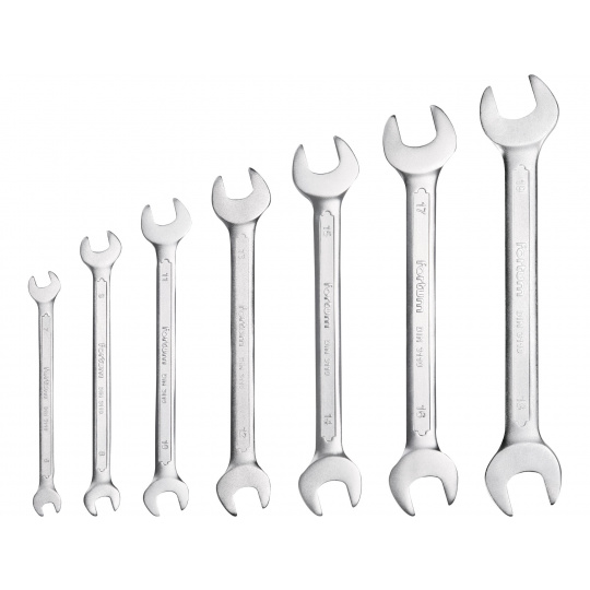 Kované z jednoho kusu chrom-vanadové oceli, ošetřené dvěma vrstvami niklu a jednou vrstvou chromu. Kvalitou, pevností a rozměry plně odpovídají normám ISO/DIN.Na dílenských klíčích toho není mnoho ke zlepšování. Tak jsme je alespoň vyrobili dokonalé. A přidali jsme jedinečné pouzdro ForDure™ – pevné, lehké a praktické. Dvouvrstvá odolná tkanina obšitá silným lemem. Kapsy z pevné síťoviny, v nichž se nedrží vlhkost ani nečistota. Přehledně vyznačené rozměry, oka po obvodu na zavěšení ve Vaší dílně. Rychlé sbalení pomocí suchého zipu. 61CrV5 a 61CrV4 (označovaná tako 6150 a 6140) je nejvyšší třída chrom-vanadové oceli. Kalená a povrchově upravená matným tvrdochromem pro dosažení optimální povrchové tvrdosti a odolnosti vůči korozivním vlivům je tato ocel použita pro všechny díly s výjimkou těch nejexponovanějších.