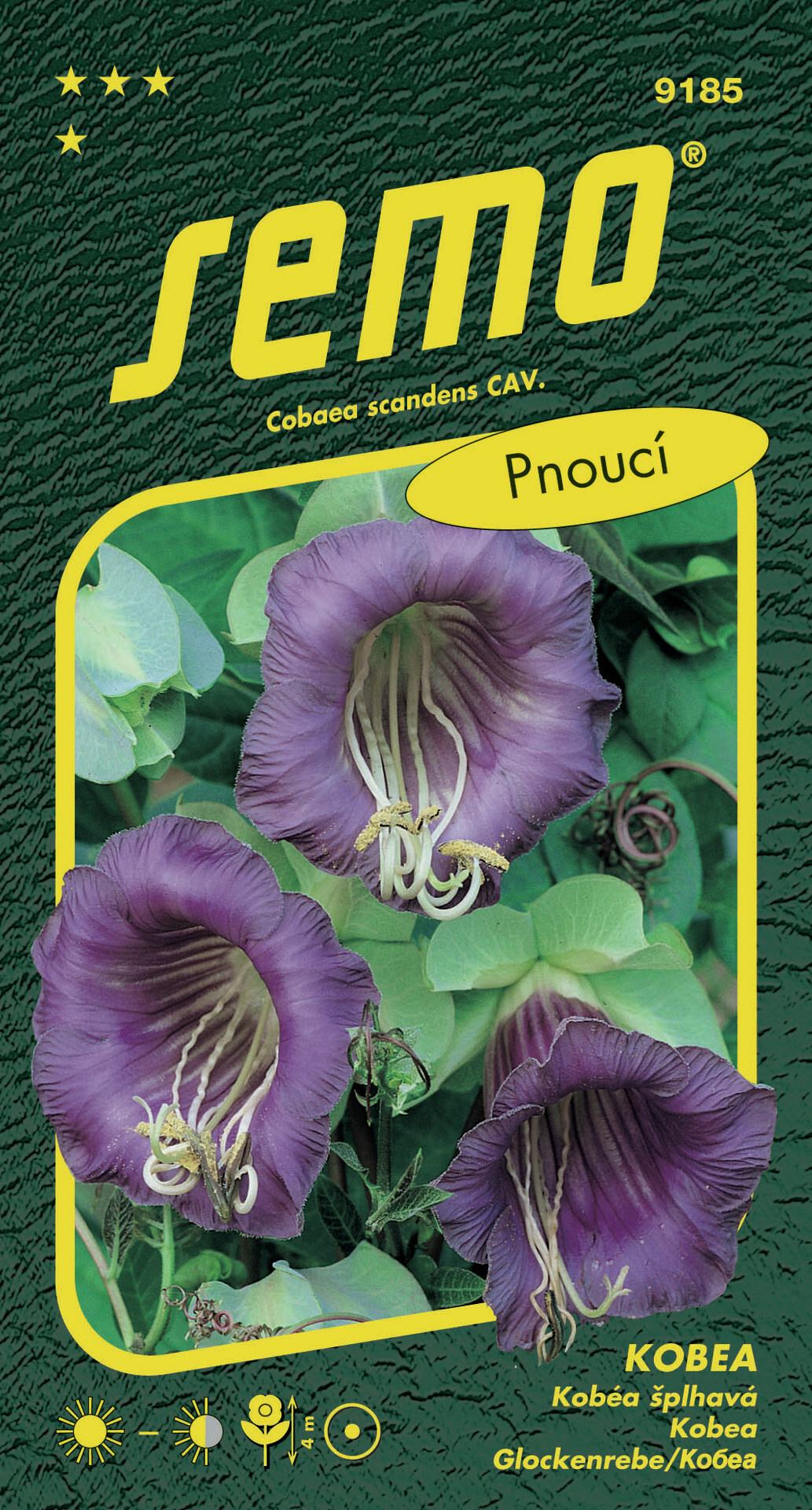 Úponkovitá liána pěstovaná jako letnička. Velké zvonkovité květy jsou v poupěti zelené, postupně se zbarvují do tmavě modra. Rostlina je ideální k popínání pergol i na balkóny. Vyžaduje slunné polohy a dostatek vláhy. Vysazujeme na chráněné stanoviště, vítr může jemné a dlouhé rostliny poškodit.