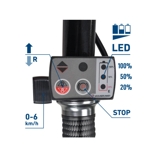 Přepravní aku kolečko s pomocným elektrickým pohonem je určeno pro přepravu tuhých, sypkých nebo hustých materiálů. Díky elektrickému pohonu se výrazně urychlí přeprava materiálu a zároveň sníží únava obsluhy, což významně zvýší produktivitu práce. Kolečko má na pravé rukojeti ovládací panel a pomocí palce si může nastavit okamžitou rychlost jak do předu, tak dozadu. Na ovládacím panelu lze nastavit jízdu dopředu nebo dozadu, brzdu a je tam ukazatel nabití baterie. Kolečka jsou poháněná nejmodernějším „brushless" motorem. Tento nový typ motoru má vyšší životnost, je výkonnější a má menší spotřebu el. energie než klasické motory s uhlíkovými kartáči. Pokud je to nutné, lze motor kompletně vypnout a používat kolečko jen na ruční pohon. Elektrická brzda se používá pokud potřebujete zamezit pohybu kolečka na místě. Pneumatika má hluboký vzorek do terénu. Kolečko je dodáváno s kovovou korbou o objemu 80l, bezešvě lisovanou z jednoho kusu plechu. Pro přepravu lehčího a objemného nákladu lze dokoupit samostatně prodávanou plastovou korbu o objemu 100l. Všechny náhradní korby mají předvrtané díry pro snadnou montáž. Kolečko má krytí IP64, což mu umožňuje dočasnou práci ve vlhkém prostředí, případně umývání vapkou, ale není určeno k trvalému provozu nebo skladování ve vlhkém prostředí. Zdrojem elektrické energie jsou dvě olověné 12V/12Ah baterie. Baterie má ochranu proti vybití pod minimální úroveň, před přetížením při nadměrném odběru proudu, přebitím, zkratem a náhlému zvýšení teploty při práci.