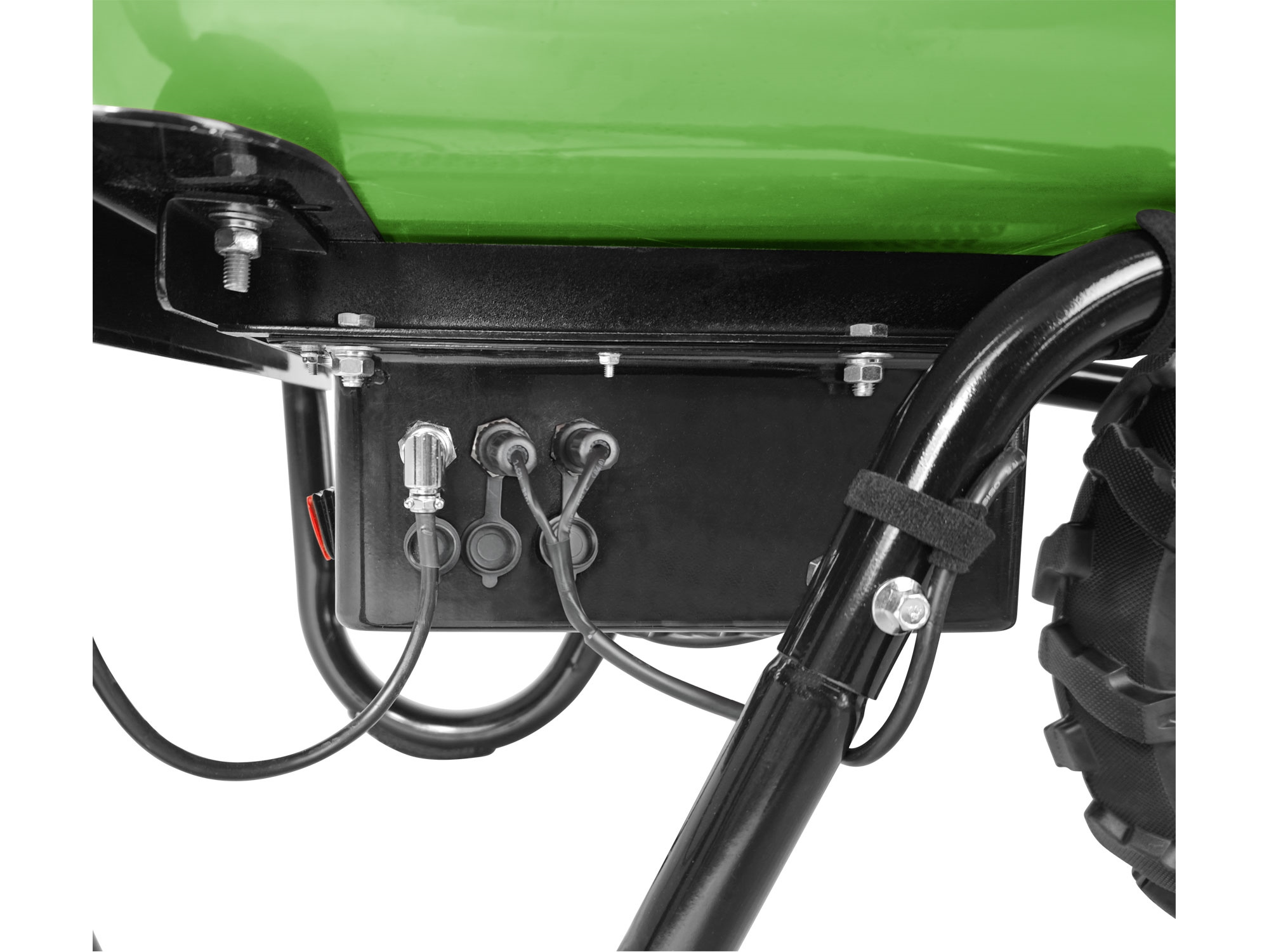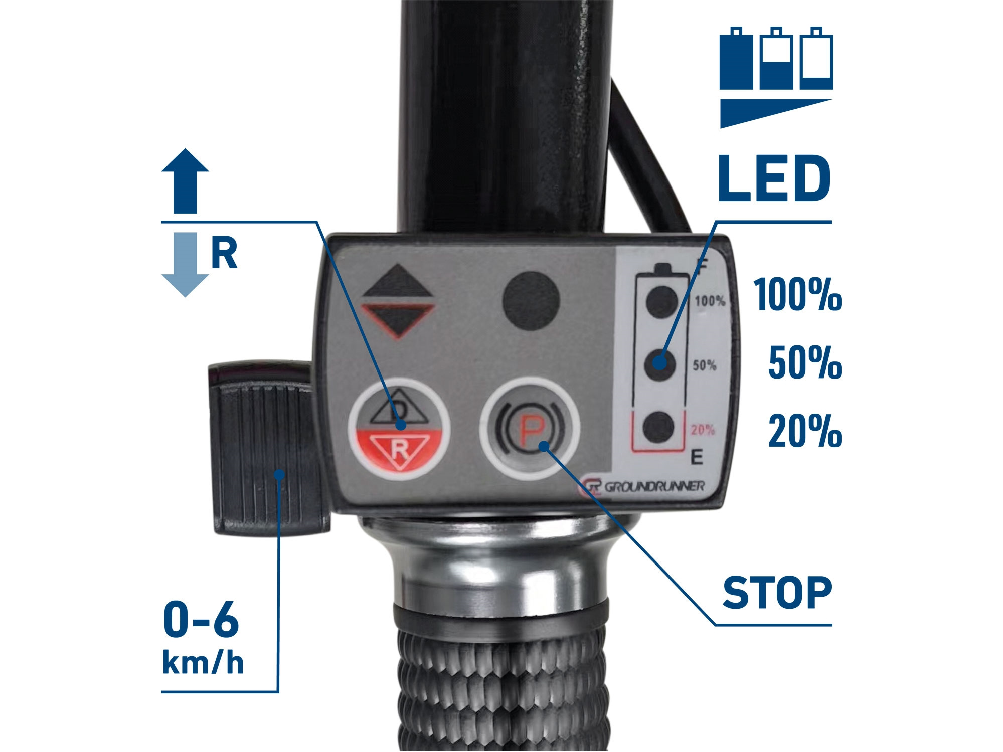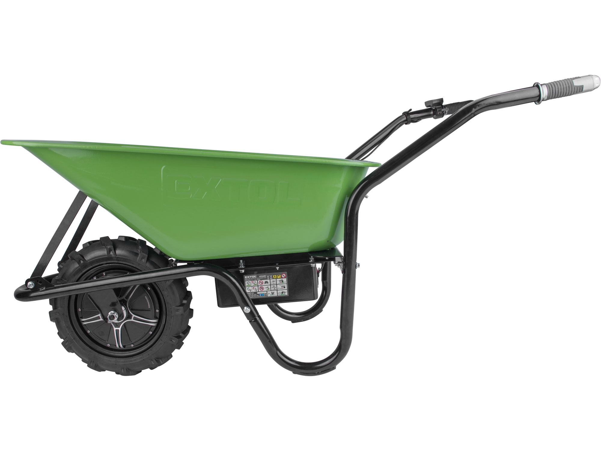 Přepravní aku kolečko s pomocným elektrickým pohonem je určeno pro přepravu tuhých, sypkých nebo hustých materiálů. Díky elektrickému pohonu se výrazně urychlí přeprava materiálu a zároveň sníží únava obsluhy, což významně zvýší produktivitu práce. Kolečko má na pravé rukojeti ovládací panel a pomocí palce si může nastavit okamžitou rychlost jak do předu, tak dozadu. Na ovládacím panelu lze nastavit jízdu dopředu nebo dozadu, brzdu a je tam ukazatel nabití baterie. Kolečka jsou poháněná nejmodernějším „brushless" motorem. Tento nový typ motoru má vyšší životnost, je výkonnější a má menší spotřebu el. energie než klasické motory s uhlíkovými kartáči. Pokud je to nutné, lze motor kompletně vypnout a používat kolečko jen na ruční pohon. Elektrická brzda se používá pokud potřebujete zamezit pohybu kolečka na místě. Pneumatika má hluboký vzorek do terénu. Kolečko je dodáváno s kovovou korbou o objemu 80l, bezešvě lisovanou z jednoho kusu plechu. Pro přepravu lehčího a objemného nákladu lze dokoupit samostatně prodávanou plastovou korbu o objemu 100l. Všechny náhradní korby mají předvrtané díry pro snadnou montáž. Kolečko má krytí IP64, což mu umožňuje dočasnou práci ve vlhkém prostředí, případně umývání vapkou, ale není určeno k trvalému provozu nebo skladování ve vlhkém prostředí. Zdrojem elektrické energie jsou dvě olověné 12V/12Ah baterie. Baterie má ochranu proti vybití pod minimální úroveň, před přetížením při nadměrném odběru proudu, přebitím, zkratem a náhlému zvýšení teploty při práci.