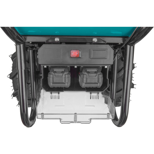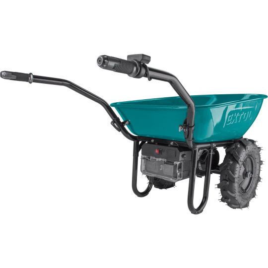 Přepravní aku kolečko dvoukolák s pomocným elektrickým pohonem je určeno pro přepravu tuhých, sypkých nebo hustých materiálů. Díky elektrickému pohonu výrazně urychluje přeprava materiálu a zároveň snižuje únava obsluhy, což významně zvyšuje produktivitu práce. Použití Li-ion baterie výrazně snižuje hmotnost kolečka oproti kolečkům, které jsou poháněny olověnými bateriemi. Kolečko má na pravé rukojeti ovladač kde si pomocí palce nastavíte okamžitou rychlost jak do předu, tak dozadu. Na ovladači lze přepnout jízdu dopředu nebo dozadu, brzdu, normální rychlost nebo Turbo. Pro běžný provoz se používá normální rychlost, Turbo lze použít při jízdě do kopce, v obtížném terénu nebo při přepravě těžšího nákladu. Kolečka jsou poháněná nejmodernějším „brushless" motorem. Tento nový typ motoru má vyšší životnost, je výkonnější a má menší spotřebu el. energie než klasické motory s uhlíkovými kartáči. Pokud je to nutné, lze krátkodobě používat kolečko bez baterie jen na ruční pohon. Zabudovaná převodovka s diferenciálem výrazně zlepšuje prostupnost terénem a výkon motoru při jízdě do kopce. Diferenciál umožňuje otočení koleček na místě. Díky umístnění těžiště nákladu nad osou kol je většina hmotnosti nákladu umístěna na kolech a obsluha skoro nic nenese. Elektrická brzda se používá pokud potřebujete zamezit pohybu kolečka na místě. Pneumatiky mají hluboký vzorek do terénu s dobrou trakcí. Kolečko je dodáváno s kovovou korbou o objemu 100l, bezešvě lisovanou z jednoho kusu plechu. Pro přepravu pevného objemnějšího nákladu (např. krabice, polena …) lze dokoupit rámovou konstrukci, která se přišroubuje na místo korby. Kolečko má krytí IP64, což mu umožňuje dočasnou práci ve vlhkém prostředí, případně umývání vapkou, ale není určeno k trvalému provozu nebo skladování ve vlhkém prostředí. Před přepravou v autě můžete sklopit ručky, takže se kolečka vejdou i do menšího auta. Zdrojem elektrické energie jsou silné SHARE20V akumulátory, které se prodávají samostatně. Z důvodu vysokého odběru je nutné použít 6-8Ah verzi. Výhodou použití SHARE20V baterií je, že když nepoužíváte kolečko, můžete je také používat v našem neustále rozšiřujícím se sortimentu nářadí používajícího SHARE20V baterie. Vyjímatelné baterie umožňují jejich snadné nabíjení a skladování v suchém a zatepleném prostředí, což je velmi důležité pro jejich životnost. Baterie mají ochranu proti vybití pod minimální úroveň, před přetížením při nadměrném odběru proudu, přebitím, zkratem a náhlému zvýšení teploty při práci. Díky použité Li-ion technologii je ho možné kdykoliv dobíjet, aniž by se tím snižovala jeho kapacita. Li-ion akumulátor ztrácí energii vlivem samovybíjení velmi pomalu a vydrží dlouho nabitý a připravený k použití.