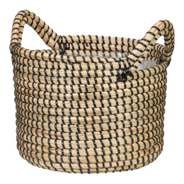 Klasická proutěná nádoba z mořské trávy s držadly, vyložená pevnou voděodolnou fólií, pro váš obývací prostor.