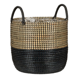 Košík z mořské trávy 515 přírodní + černá 27 - s fóliovou vložkou a úchyty