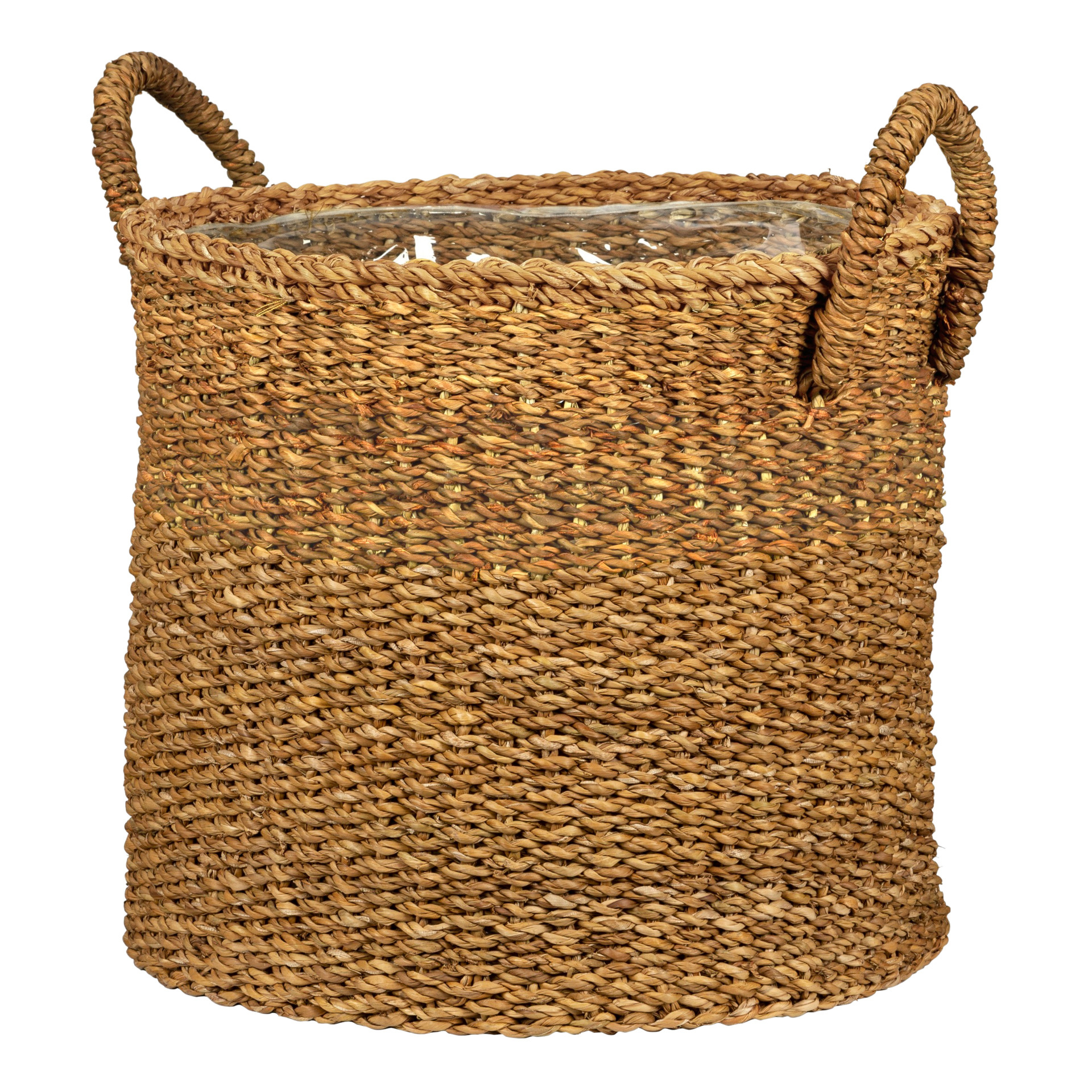 Klasická proutěná nádoba z mořské trávy s držadly, vyložená pevnou voděodolnou fólií, pro váš obývací prostor.