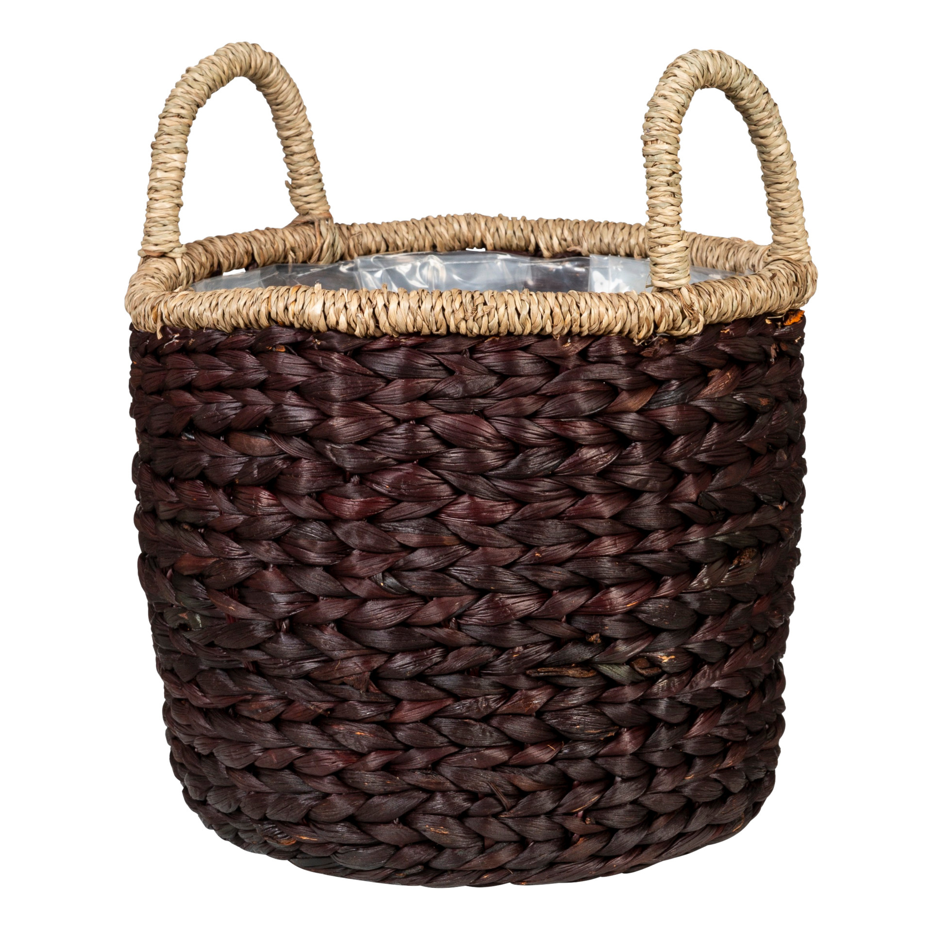 Košík z vodního hyacintu 506 hnědý 26 - s fóliovou vložkou a úchyty