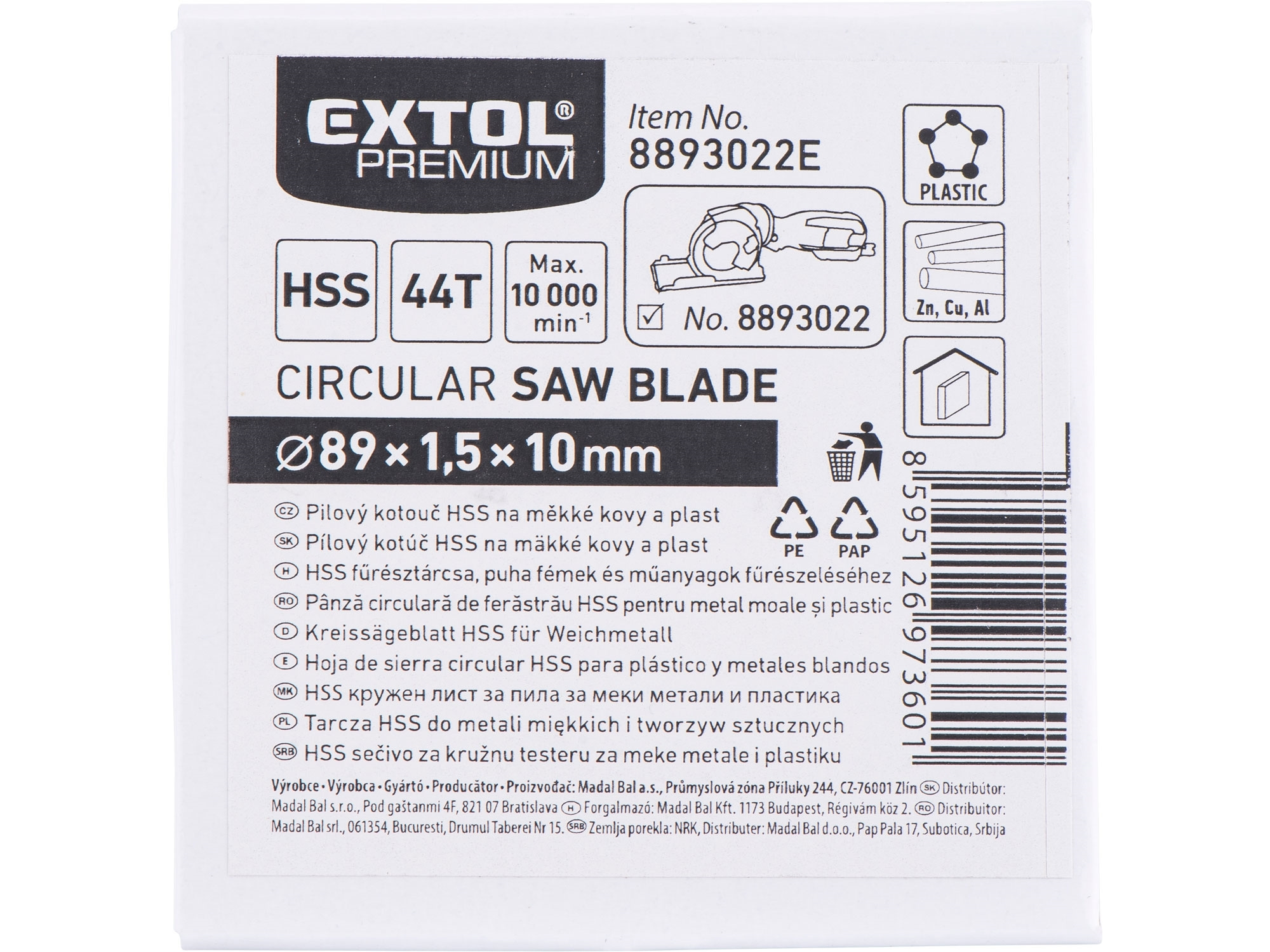 kotouč pilový HSS, ⌀89×1×10mm, 44T