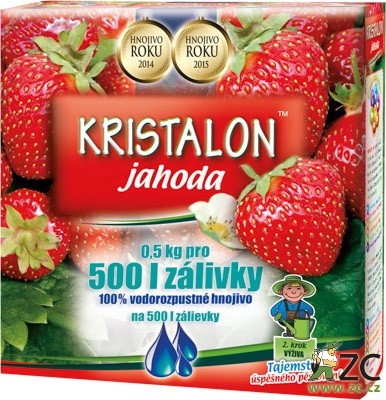 Kristalon jahoda 0,5 kg zajistí rychlejší počáteční růst díky přímé absorpci fosforu, rychlejší nástup produkčního období. Je vhodné pro všechny druhy jahod pěstovaných ve volné půdě i v nádobách. Dávkování: 1 odměrka (10g) hnojiva se rozpustí v 10 l vody a vystačí pro přibližně 5 m2 plochy. Balení 0,5kg je určeno pro 500 l zálivky celkem.
