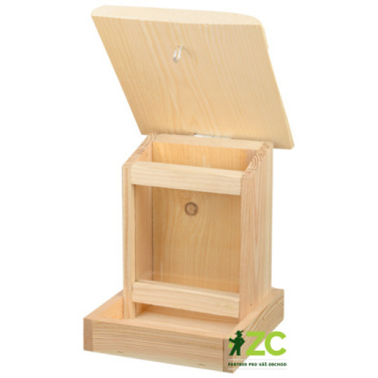 Dřevěné krmítko určené pro přikrmování venkovního ptactva převážně v zimních měsících. Bylo zjištěno, že jedna sýkorka mimo zimní období sezobe asi 2kg různých škůdců. Přes zimu pak spotřebuje cca 1 kg slunečnicových semínek. Takže starejte se v zimě o ""své"" sýkorky, ony vám to oplatí.
