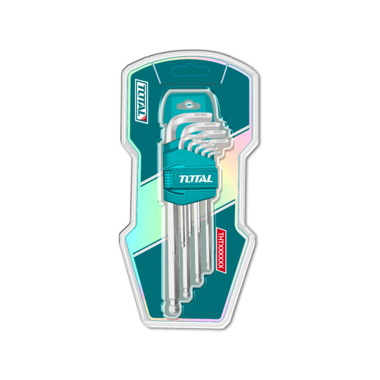 9dílná sada šestihranných klíčů s kuličkovým hrotem, Materiál: Cr-VVelikost: 1,5 mm, 2 mm, 2,5 mm, 3 mm, 4 mm, 5 mm, 6 mm, 8 mm, 10 mm.Tepelně zpracováno a pochromováno.
