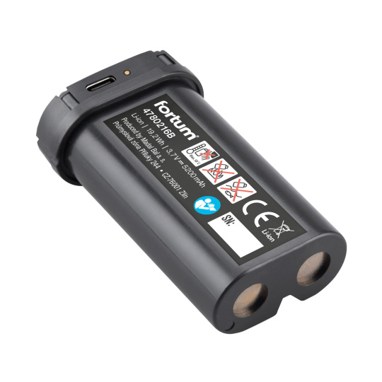 3,7V/5200 mAh Li-ion nabíjecím akumulátorem nebo ze sítě 230V/50Hz nabíječkou (síťovým napájecím adaptérem) a kabelem s USB-C zakončením (vše součástí dodávky)
