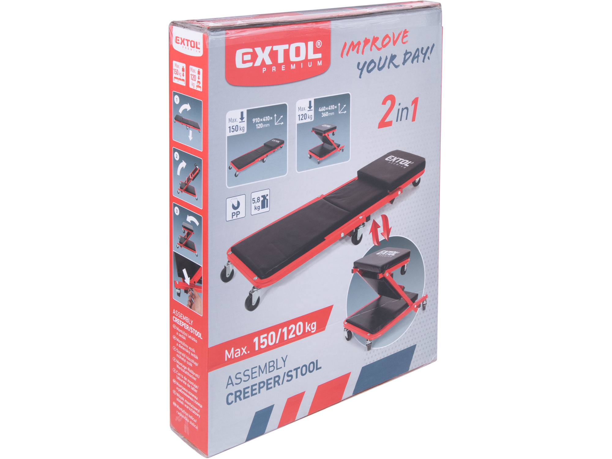 lehátko/sedák 2v1, montážní pojízdné, rozloženo 91x41x12cm, až 150/120kg