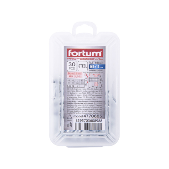 matice nýtovací ocelové, sada 30ks, M5x12mm