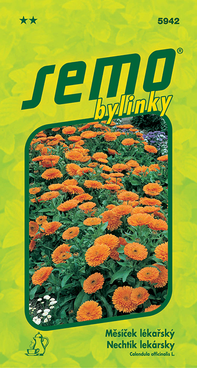 Jednoletá bylina kvetoucí jasně oranžovými úbory, sbíráme květy, které mají široké použití.