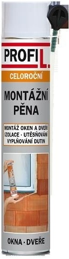 Použití: montáž oken a dveří, vyplňování dutin, izolační vlastnosti
