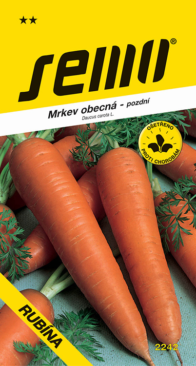 RUBÍNA (kód 2242) – pozdní mrkev velmi vhodná k zimnímu skladování z raných výsevů v březnu až dubnu. Kořen je válcovitý, ve spodní části se zužující, částečně tupě zakončený, 16 – 17 cm dlouhý. Barva kořene je intenzivně oranžovo-červená. Odrůda je odolná vůči vybíhání do květu, praskání a větvení kořenů. Ze 100 m2 lze sklidit 500 – 600 kg kořenů. Má velmi dobrou skladovatelnost. Vegetační doba je 160 – 180 dní.