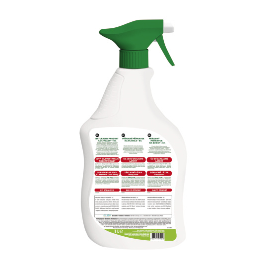 Totální herbicidní přípravek přírodního původu k přímému použití. Poradí si s plevelem na krajnicích cestách, chodnících a terasách. Dobře se ale také uplatní jako dezinfekce nástrojů proti plísňovým infekcím či tekutina pro ošetření semen. Účinky jsou viditelné již po 2 hodinách - postříkané rostliny žloutnou a scvrkávají se.