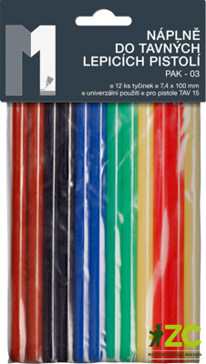 Náplně barevné malé do tavných pistolí, obsah 12 ks.