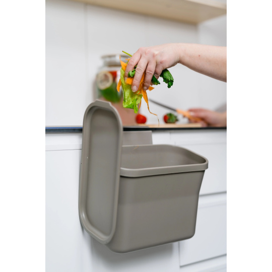 Malý, ale praktický pomocník do každé kuchyně. Nádobu zavěsíte na vnější i vnitřní stranu dvířek skříňky. Při vaření tak máte vždy po ruce místo na bioodpad. Šetří místo, udržuje pořádek a zpříjemní každodenní vaření.