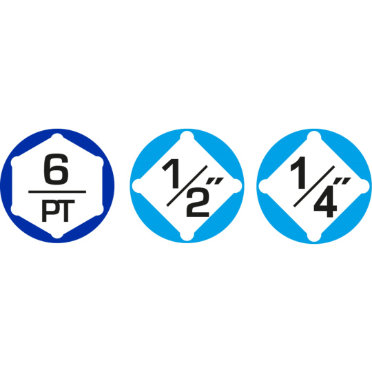 1/2¨ 10-11-12-13-14-15-16-17-18-19-20-21-22-23-24-27-30-32, 1/4¨ 4-4,5-5-5,5-6-7-8-9-10-11-12-13-14mm