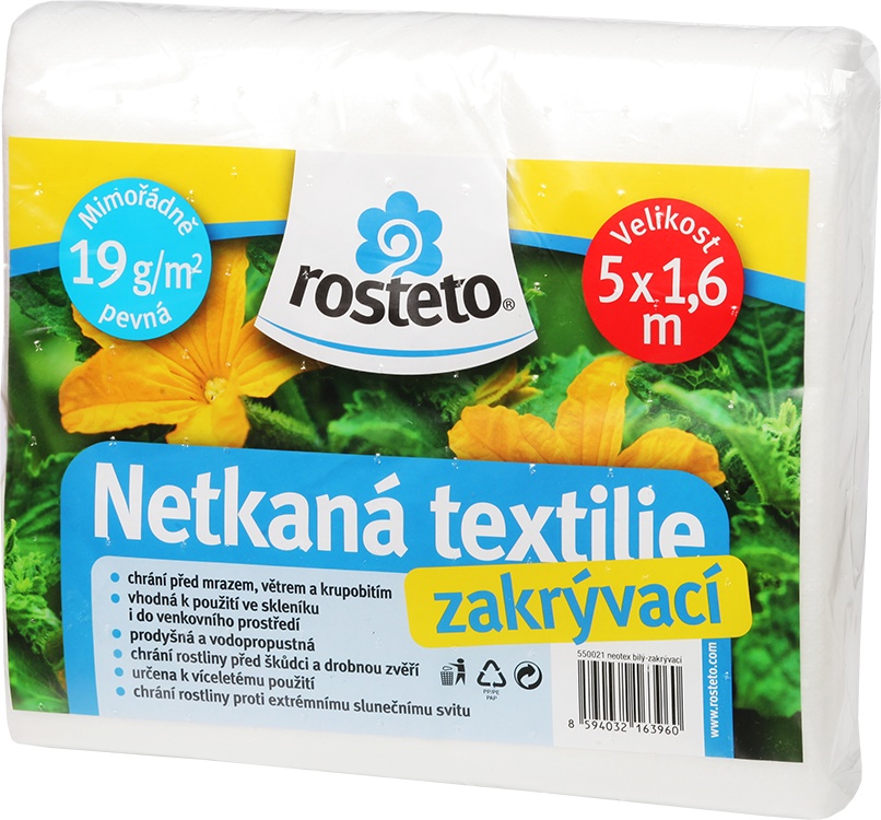 Bílá netkaná textilie je určena k ochraně rostlin před mrazem, krupobitím a živočišnými škůdci. Propouští světlo i vodu a její hmotnost 19g/m2 umožňuje zakrývání rostlin bez nutnosti budování konstrukce.