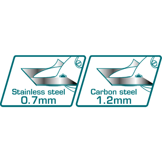 max. stříhací kapacita 1,2mm pro uhlíkovou ocel a 0,7mm pro nerezovou ocel