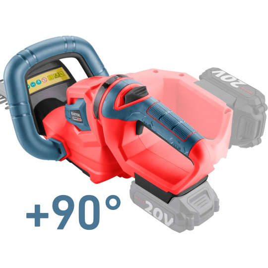Aku nůžky jsou určeny ke stříhání živého plotu až se středně silnými větvičkami v domácích zahradách. Maximální průměr střihaných větví je 16mm. Ostrá stříhací čepel si snadno poradí s živým plotem a je osazena hliníkovou lištou, která ji chrání před poškozením. Tuto čepel lze otáčet až o 90˚ což usnadňuje stříhání ve vertikální i horizontální poloze. Proti odletujícím kouskům větví je uživatel chráněn pevným plastovým krytem. Stroj je vybaven bezpečnostní pojistkou, která se aktivuje při vyklouznutí z rukou a elektronickou doběhovou brzdou, která zajistí jeho rychlé zastavení. Pogumovaná rukojeť brání vysmeknutí, tlumí vibrace a zpříjemňuje držení při práci. Nůžky jsou navrženy tak, aby byly lehké a ergonomické. Mají dobře vyváženou konstrukci, která snižuje namáhání rukou a zad při delší práci. Díky napájení z baterie již není nutné dávat pozor na napájecí kabel a manipulace s nimi je pohodlnější. Také nikoho nebude rušit hlukem, který vydávají benzínové modely. Aku nůžky nevyžadují složitou péči. Stačí je pravidelně čistit, udržovat ostří čepele a kontrolovat stav baterie. Pro běžnou práci dostačují jeden nebo dva 2Ah akumulátory, které můžete rychle nabít v rychlonabíječce, pro náročnější nebo delší práci doporučujeme větší akumulátory s kapacitou 4–8Ah. Akumulátor má indikátor nabití a lze použít ve všech typech nářadí řady EXTOL SHARE20V. Díky použité Li-ion technologii je ho možné kdykoliv dobíjet, aniž by se tím snižovala jeho kapacita. Li-ion akumulátor ztrácí energii vlivem samovybíjení velmi pomalu a vydrží dlouho nabitý a připravený k použití.