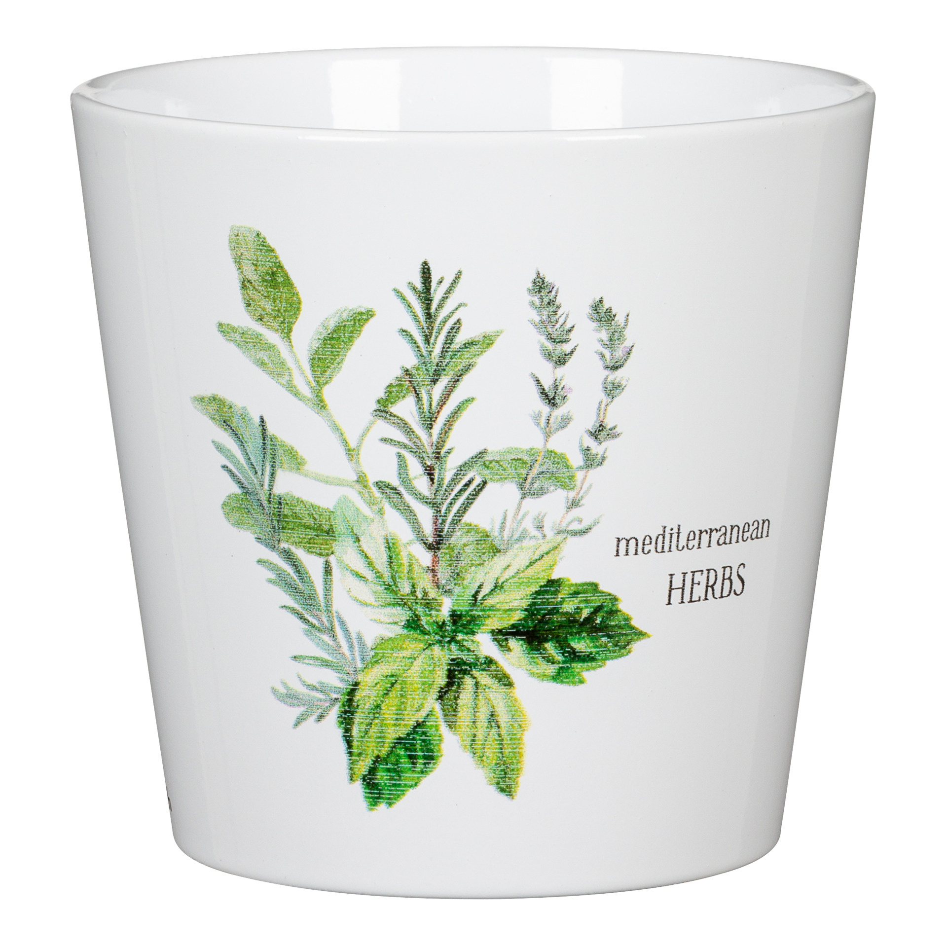 Lesklý keramický obal s potiskem "Bylinky" evokuje svěžest a přírodu. Skvělý do bylinkových aranžmá.
