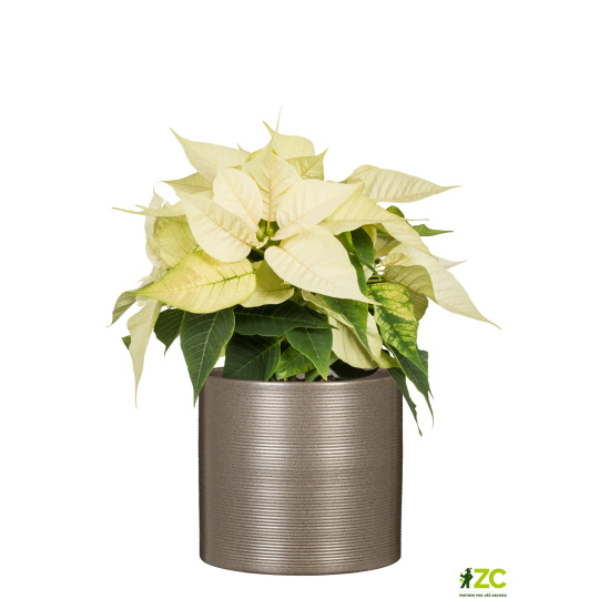 Válcovitý obal je opatřený pravidelnými, filigránskými, příčnými rýhami, které květináči propůjčují v dopadajícím světle velmi pěkný vzhled.