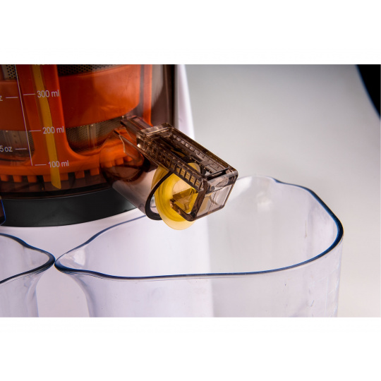 Tento nízkootáčkový odšťavňovač patří mezi nejnovější generaci přístrojů, jenž využívají technologii dvoufázového, pomalého odšťavňování. V první fázi je ovoce a zelenina nadrcena a ve druhé fázi je nadrcená hmota prolisována. Tímto způsobem je dosaženo maximální využitelnosti zpracovaných surovin. Při pomalém zvyšování tlaku nedochází ke zvyšování teploty a proto vitamíny a minerály zůstanou uchovány ve šťávě. Nedochází k míchání se vzduchem a tím k procesu oxidace. Výsledná chuť i barva je lepší.Oproti odstředivým odšťavňovačům, méně zahřívá lisovanou směs, a tím zabraňuje znehodnocování vitamínů a zachovává přirozenou chuť čerstvého ovoce a zeleniny. Tento způsob zpracování je vysoce účinný a současně maximálně šetrný. Přístroj se dá snadno rozebrat a velmi jednoduše a rychle se čistí. Většinou stačí propláchnout pod tekoucí vodou, případně síto dočistit kartáčkem, který je součástí příslušenství. Nezanedbatelnou předností tohoto odšťavňovače je jeho velikost. Je nenáročný na prostor a místo si najde i v té nejmenší kuchyni. Příslušenství - pěchovadlo- nádoba na šťávu- nádoba na odpad- kartáček na čištění