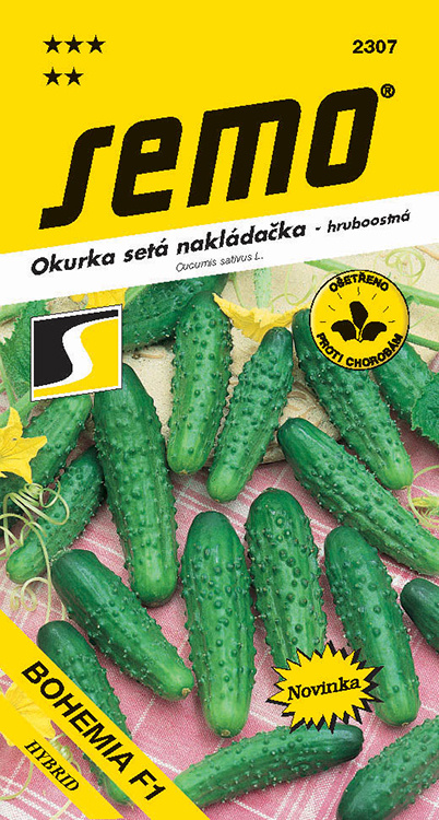 BOHEMIA F1 - velmi raná středně vzrůstná odrůda s vysokou odolností k plísni okurkové. Poskytuje delší, štíhlé tmavozelené plody. Bohemia je geneticky nehořká.