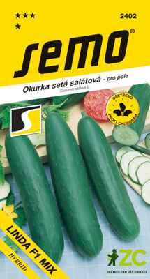 LINDA  F1 MIX (kód 2402) – velmi kvalitní, středně pozdní hybrid pro polní pěstování. Má bujný vzrůst. Plody jsou menší, sytě tmavozelené, štíhlé, téměř bez krčku, jen zřídka deformují, geneticky nehořké. Vyniká výborným zdravotním stavem, vitalitou, výraznou chladuvzdorností a schopností regenerace. Je vhodná i pro pozdní výsevy. Kvete pouze samičími květy, proto je nutné do osiva přidávat opylovače (MIX). Je