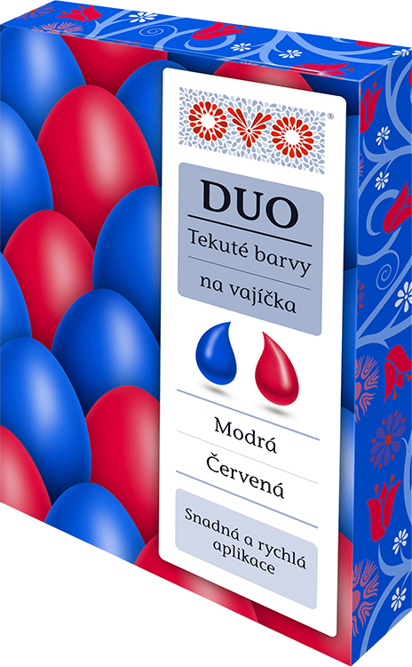 Tekuté barvy na velikonoční vajíčka v DUO sadách modrá/červená - nejrychlejší a praktická aplikace.
