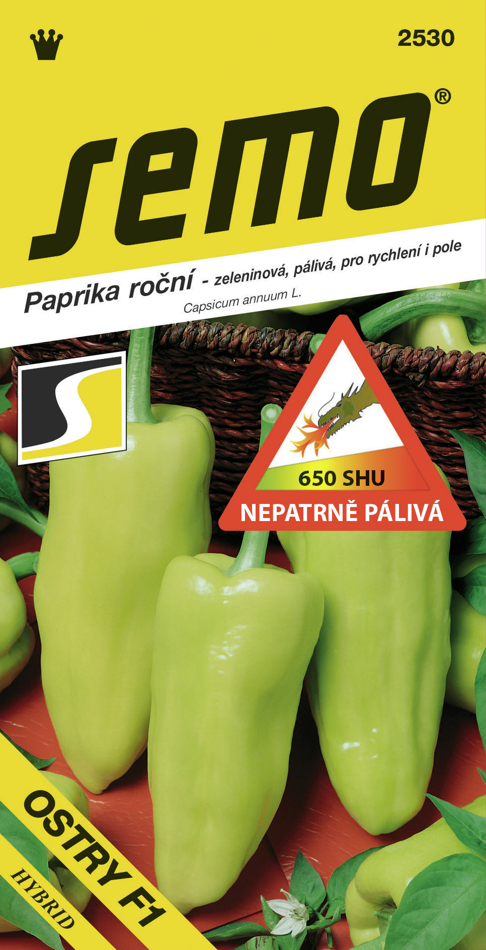 OSTRY F1 (kód 2530) – poloraný nový hybrid vhodný pro rychlení i polní pěstování. Postavení větví polovzpřímené, stonek po první větvení středně dlouhý. Plod středně dlouhý až dlouhý, středně široký až široký, na podélném řezu trojúhelníkovitého tvaru, stopečná jamka středně hluboká, apikální konec špičatý, povrch slabě zvrásněný, mezikomorové brázdy středně hluboké, lesk silný, barva před zralostí středně nazelenale bílá, ve zralosti středně až tmavě červená, oplodí středně silné, placenta malá až středně velká, obsahuje kapsaicin. Chuť mírně pálivá (pálivý