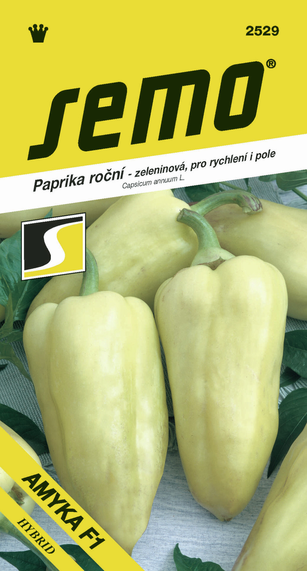 Velmi raná odrůda středního vzrůstu určená pro sklizeň v technické zralosti (smetanově žlutá barva). Plod je menší smetanový tlustostěnný jehlanec, v botanické zralosti červený. Díky hybridnímu šlechtění se u odrůdy AMYKA podařilo potlačit výskyt antokyanových skvrn. Kromě přímého konzumu jsou plody velmi vhodné i na plnění.