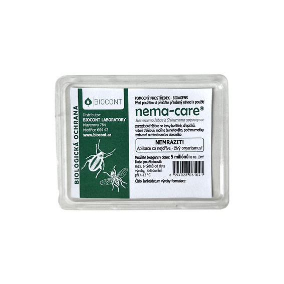 NEMA - CARE aplikujte v době výskytu škůdce/bezprostředně po objevení prvních larev škůdce (cca od konce dubna do začátku října v závislosti na teplotě a druhu škůdce). Aplikace na vrtuli třešňovou se provádí v období odpadu prvních shnilých třešní, cca 3-4 týdny po zešloutnutí třešní v závislosti na odrůdě.