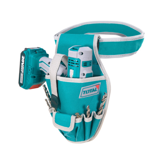 velikost 290x190mm, s pásem, maximální nosnost 8kg nářadí, 1 kapsa pro AKU vrtačku a 5 předních kapes pro šroubováky a vrtáky, materiál: 600D polyester